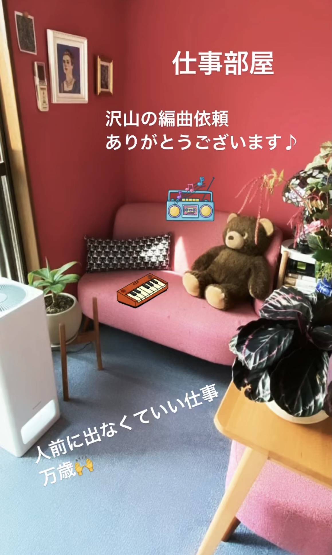 部屋の壁もマゼンタピンクに塗りました。