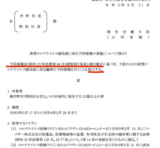 【重要】「予防接種法附則第7条第1項」をご存知ですか?厚労省から鬼畜の指示