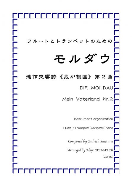 出版楽譜 CD・楽譜販売 【楽譜】フルートとトランペットのための『モルダウ』連作交響詩 《我が祖国》第2曲 2019.06.11 楽譜販売 曲 名 『モルダウ 』 連作交響詩 《我が祖国》第2曲 フルートとトランペットとピアノ ver. 楽器編成 Flute / Trumpet / piano 価 格 2500円(税抜き) 音源 YouTube 販売店 ・村松楽器販売店 ・BASEネットショップ (楽譜の中身が見れます) 曲解説 ・両パートに旋律を交互に吹けるようにアレンジしました。また原曲にない副旋律も多数取り入れています。ピアノの音を多めに、幾分華やかに書きましたので、演奏会の掉尾に最適です。YouTubeにて参考演奏公開中です。 ・トランペットの代わりにコルネットを用いても遜色なくフルートの音色と良く馴染みます。 ——————- 演奏レベル:中級者以上 演奏時間:約5分 【留意点とお願い】 少しでもお安くご提供出来るように、そして紛失防止のため、パート譜は別紙ではな くスコアの後に綴じています。パート譜はコピーしてお使い下さい。 【コラム】→「心震えたモルダウ」 ——————————————————– フォローすると割引などお得な特典がいっぱい! 詳細はこちら☞https://akiyouematsu.com/blog/6952 こっそりやってます♪( ´▽`)気づいた人はラッキーかも 最近好んで飲んでいるお酒 前の記事 【楽譜】フルート二重奏とピアノのための『モルダウ』連作交響詩 《我が祖国》第2曲 次の記事 最近の記事 膝、その後とアラフィフ障害 【重要】ナフサ!物流大丈夫?? オフィス Tempo.F GW休業のお知らせ 投稿カテゴリー プロフィール ブログ・NEWS CD・楽譜販売 出版楽譜 オフィス Tempo.F 営業と業務について 演奏会と新刊楽譜出版の告知と発表 音楽エッセイ 音楽家・オススメ音楽 音楽家・オススメ書籍 音楽家・休日の過ごし方 作曲・編曲・制作の軌跡 家庭菜園 健康情報 その他 年月日別 年月日別 アーカイブ 2026年4月 2026年3月 2026年2月 2026年1月 2025年12月 2025年11月 2025年10月 2025年9月 2025年8月 2025年7月 2025年6月 2025年5月 2025年4月 2025年3月 2025年2月 2025年1月 2024年12月 2024年11月 2024年10月 2024年9月 2024年8月 2024年7月 2024年6月 2024年5月 2024年4月 2024年3月 2024年2月 2024年1月 2023年12月 2023年11月 2023年10月 2023年9月 2023年8月 2023年7月 2023年6月 2023年5月 2023年4月 2023年3月 2023年2月 2023年1月 2022年12月 2022年11月 2022年10月 2022年9月 2022年8月 2022年7月 2022年6月 2022年5月 2022年4月 2022年3月 2022年2月 2022年1月 2021年12月 2021年11月 2021年10月 2021年9月 2021年8月 2021年7月 2021年6月 2021年5月 2021年4月 2021年3月 2021年2月 2021年1月 2020年12月 2020年11月 2020年10月 2020年9月 2020年8月 2020年7月 2020年6月 2020年5月 2020年4月 2020年3月 2020年2月 2020年1月 2019年12月 2019年11月 2019年10月 2019年9月 2019年8月 2019年7月 2019年6月 2019年5月 2019年4月 2019年3月 2019年2月 2019年1月 2018年12月 2018年11月 2018年10月 2018年9月 2018年8月 2018年7月 2018年6月 2018年5月 2018年4月 2018年3月 2018年2月 2018年1月 2017年12月 2017年11月 2017年10月 2017年9月 2017年8月 2017年7月 2017年6月 2017年5月 2017年4月 2017年3月 2017年2月 2017年1月 2016年12月 2016年11月 2016年10月 2016年9月 2016年8月 2016年7月 2016年6月 2016年5月 2016年4月 2016年3月 2016年2月 2016年1月 2015年12月 2015年11月 2015年10月 2015年9月 2015年8月 2015年7月 2015年6月 2015年5月 2015年4月 2015年3月 2015年2月 検索: