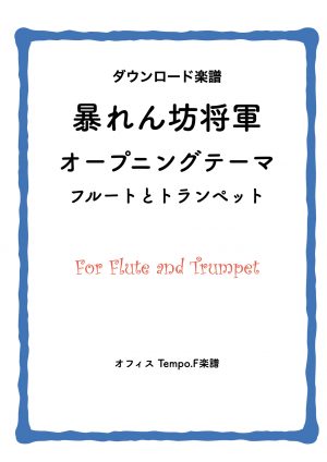 出版楽譜 CD・楽譜販売 【楽譜】フルートとトランペット編成『暴れん坊将軍』オープニングテーマ曲 2020.03.25 楽譜販売 曲 名 暴れん坊将軍オープニングテーマ 楽器編成 Flute(フルート) Trumpet (トランペット)またはCornet(コルネット) 価 格 480円 音源 YouTube 販売店 Piascore ダウンロード楽譜 曲解説 ・トランペットをコルネットに用いても遜色ありません。 演奏時間:約2分弱 トランペットin B 編曲:上松明代(2020/1) オフィス Tempo.Fダウンロード楽譜 音楽で遊ぼう!!(6)暴れん坊将軍 前の記事 🌸🚗 次の記事 最近の記事 膝、その後とアラフィフ障害 【重要】ナフサ!物流大丈夫?? オフィス Tempo.F GW休業のお知らせ 投稿カテゴリー プロフィール ブログ・NEWS CD・楽譜販売 出版楽譜 オフィス Tempo.F 営業と業務について 演奏会と新刊楽譜出版の告知と発表 音楽エッセイ 音楽家・オススメ音楽 音楽家・オススメ書籍 音楽家・休日の過ごし方 作曲・編曲・制作の軌跡 家庭菜園 健康情報 その他 年月日別 年月日別 アーカイブ 2026年4月 2026年3月 2026年2月 2026年1月 2025年12月 2025年11月 2025年10月 2025年9月 2025年8月 2025年7月 2025年6月 2025年5月 2025年4月 2025年3月 2025年2月 2025年1月 2024年12月 2024年11月 2024年10月 2024年9月 2024年8月 2024年7月 2024年6月 2024年5月 2024年4月 2024年3月 2024年2月 2024年1月 2023年12月 2023年11月 2023年10月 2023年9月 2023年8月 2023年7月 2023年6月 2023年5月 2023年4月 2023年3月 2023年2月 2023年1月 2022年12月 2022年11月 2022年10月 2022年9月 2022年8月 2022年7月 2022年6月 2022年5月 2022年4月 2022年3月 2022年2月 2022年1月 2021年12月 2021年11月 2021年10月 2021年9月 2021年8月 2021年7月 2021年6月 2021年5月 2021年4月 2021年3月 2021年2月 2021年1月 2020年12月 2020年11月 2020年10月 2020年9月 2020年8月 2020年7月 2020年6月 2020年5月 2020年4月 2020年3月 2020年2月 2020年1月 2019年12月 2019年11月 2019年10月 2019年9月 2019年8月 2019年7月 2019年6月 2019年5月 2019年4月 2019年3月 2019年2月 2019年1月 2018年12月 2018年11月 2018年10月 2018年9月 2018年8月 2018年7月 2018年6月 2018年5月 2018年4月 2018年3月 2018年2月 2018年1月 2017年12月 2017年11月 2017年10月 2017年9月 2017年8月 2017年7月 2017年6月 2017年5月 2017年4月 2017年3月 2017年2月 2017年1月 2016年12月 2016年11月 2016年10月 2016年9月 2016年8月 2016年7月 2016年6月 2016年5月 2016年4月 2016年3月 2016年2月 2016年1月 2015年12月 2015年11月 2015年10月 2015年9月 2015年8月 2015年7月 2015年6月 2015年5月 2015年4月 2015年3月 2015年2月 検索: