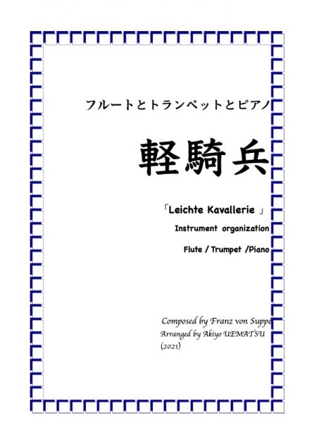 出版楽譜 ブログ・NEWS CD・楽譜販売 【楽譜】フルートとトランペットとピアノ編成『軽騎兵』 2021.06.01 楽譜販売 曲 名 「軽騎兵」 楽器編成 フルートとトランペットとピアノ 価 格 1600円/1760円(村松楽器販売) 音源 YouTube 販売店 ・オフィス Tempo.Fオンラインショップ ・村松楽器販売 曲解説 演奏レベル:中級以上 演奏時間:約5分 【楽譜に関する留意点】 紛失防止のため、パート譜は別紙ではなくスコアと共に綴じています。 【曲解説】 オーストリアの作曲家 フランツ・ファン・スッペの二大人気曲の一つ、喜歌劇 序曲『軽騎兵』(ちなみにもう一曲は『詩人と農夫』と言われる)を、フルートとトランペットとピアノ編成に編曲しました。 【演奏のポイント】 この曲の中間部である[E]からのハンガリー風メロディーは、豊かな表現を披露できるよう、両パート共に施しています。また後半[G]から始まるギャロップするような行進曲は騎馬兵が軽やかに鮮やかに駆ける様子を表現してみて下さい。どちらの楽器にも旋律を吹けるようにアレンジしています。 植物と開運✨ありがとうの交換 前の記事 とにかく植物が欲しい!! 次の記事 最近の記事 膝、その後とアラフィフ障害 【重要】ナフサ!物流大丈夫?? オフィス Tempo.F GW休業のお知らせ 投稿カテゴリー プロフィール ブログ・NEWS CD・楽譜販売 出版楽譜 オフィス Tempo.F 営業と業務について 演奏会と新刊楽譜出版の告知と発表 音楽エッセイ 音楽家・オススメ音楽 音楽家・オススメ書籍 音楽家・休日の過ごし方 作曲・編曲・制作の軌跡 家庭菜園 健康情報 その他 年月日別 年月日別 アーカイブ 2026年4月 2026年3月 2026年2月 2026年1月 2025年12月 2025年11月 2025年10月 2025年9月 2025年8月 2025年7月 2025年6月 2025年5月 2025年4月 2025年3月 2025年2月 2025年1月 2024年12月 2024年11月 2024年10月 2024年9月 2024年8月 2024年7月 2024年6月 2024年5月 2024年4月 2024年3月 2024年2月 2024年1月 2023年12月 2023年11月 2023年10月 2023年9月 2023年8月 2023年7月 2023年6月 2023年5月 2023年4月 2023年3月 2023年2月 2023年1月 2022年12月 2022年11月 2022年10月 2022年9月 2022年8月 2022年7月 2022年6月 2022年5月 2022年4月 2022年3月 2022年2月 2022年1月 2021年12月 2021年11月 2021年10月 2021年9月 2021年8月 2021年7月 2021年6月 2021年5月 2021年4月 2021年3月 2021年2月 2021年1月 2020年12月 2020年11月 2020年10月 2020年9月 2020年8月 2020年7月 2020年6月 2020年5月 2020年4月 2020年3月 2020年2月 2020年1月 2019年12月 2019年11月 2019年10月 2019年9月 2019年8月 2019年7月 2019年6月 2019年5月 2019年4月 2019年3月 2019年2月 2019年1月 2018年12月 2018年11月 2018年10月 2018年9月 2018年8月 2018年7月 2018年6月 2018年5月 2018年4月 2018年3月 2018年2月 2018年1月 2017年12月 2017年11月 2017年10月 2017年9月 2017年8月 2017年7月 2017年6月 2017年5月 2017年4月 2017年3月 2017年2月 2017年1月 2016年12月 2016年11月 2016年10月 2016年9月 2016年8月 2016年7月 2016年6月 2016年5月 2016年4月 2016年3月 2016年2月 2016年1月 2015年12月 2015年11月 2015年10月 2015年9月 2015年8月 2015年7月 2015年6月 2015年5月 2015年4月 2015年3月 2015年2月 検索: